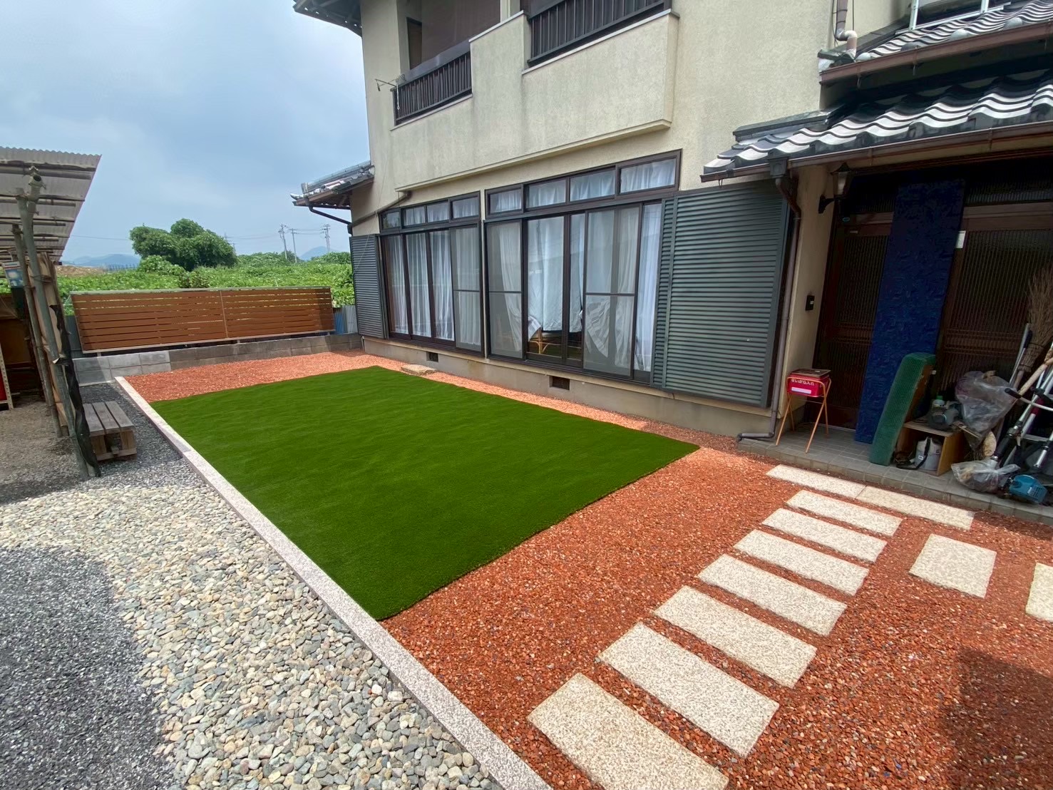 ・防草シート、除草剤、瓦チップを活用したお庭全体のリフォーム