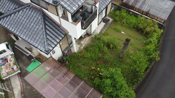 次に裏庭です。すぐ裏に山があるので、日中でもジメジメしていて蚊が群がってきます。