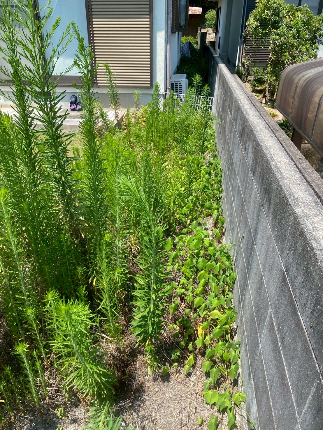 表のお庭です。お庭のジャングルで主役に度々登場するセイタカアワダチソウが群れを成しています。