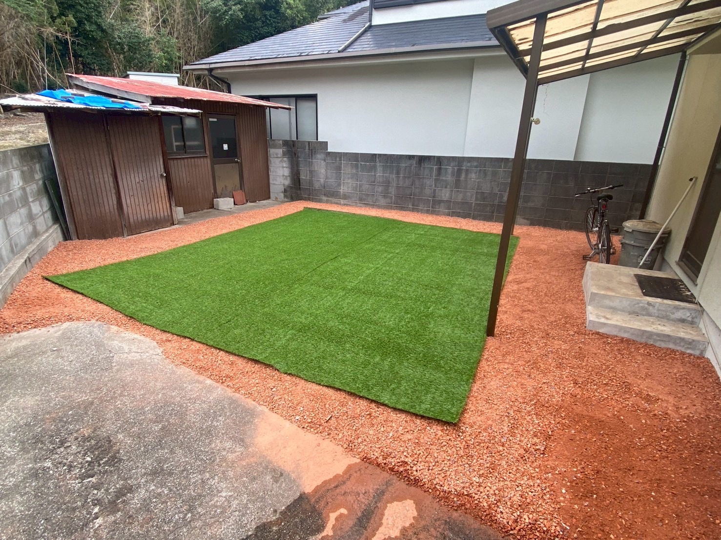 最後に既にネット通販でお買い求めのリアル人工芝をプロが施工させていただきました。